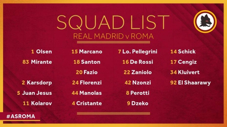 La delantera romanista estará liderada por el bosnio Edin Dzeko, que ya vio puerta contra el Real Madrid en un partido de la Liga de Campeones 2012-2013, cuando vestía la camiseta del Manchester City inglés.