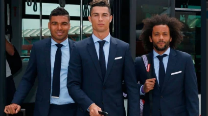 Casemiro, Cristiano Ronaldo y Marcelo, durante la expedición del Real Madrid a Kiev. FOTO: Real Madrid