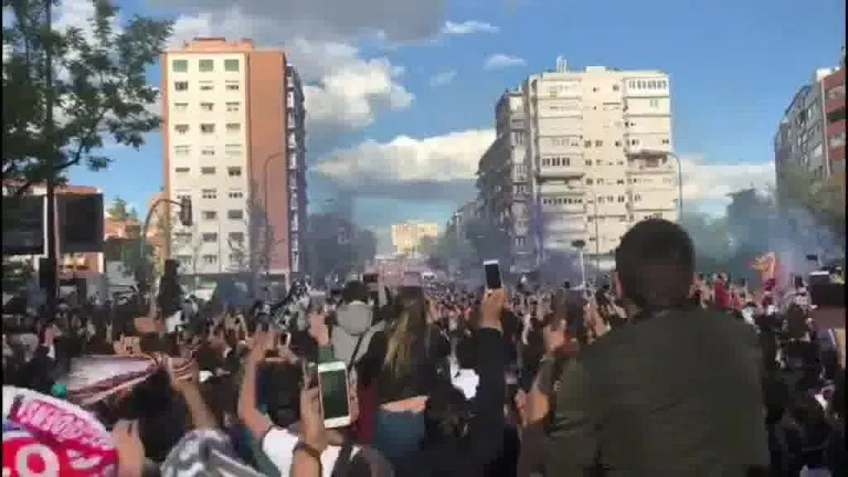 Recibimiento de la afición del Real Madrid al bus de los blancos