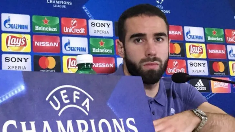 El lateral español del Real Madrid Dani Carvajal aseguró que el duelo de vuelta de los octavos de final de la Liga de Campeones que su equipo jugará contra el Nápoles será "dificilísimo", a pesar de haber conseguido un "buen resultado" en la ida. "Es un buen resultado (3-1 a favor del Madrid) pero sabemos que será un partido dificilísimo, tenemos que salir al campo a sudar la camiseta como nos pide este escudo", dijo en la rueda de prensa previa al encuentro. Carvajal opinó que el ambiente del estadio San Paolo será "bonito" aunque destacó que el fútbol "se juega once contra once" y reconoció que el Real Madrid tendrá que demostrar su superioridad en el campo. Sobre el ambiente que le puede esperar al Real Madrid en San Paolo, donde los hinchas del Nápoles preparan un auténtico "infierno" para el rival, dijo: "Estos ambientes son hasta bonitos. A cualquier jugador jugar en este ambiente con tanta gente apretando, sintiendo encima el estadio es bonito, pero al final es once contra once y un balón, y ahí es donde debemos ser mejores". Carvajal también ha apuntado a las estadísticas para justificar que ningún jugador del Real Madrid está exento de correr y que todos corren mucho, como uno de los secretos del éxito. "Si miramos las estadísticas, vemos que todos tratamos de trabajar mucho en defensa y en ataque, y es lo que nos está llevando a estos años de éxito", afirmó. El defensa subrayó, además, que el Nápoles cuenta con "jugadores rápidos" y consideró que será importante mantener las distancias cortas. "En la ida nos crearon mucho peligro, pues tienen jugadores rápidos. Debemos cerrarles los espacios y jugar como equipo, pues con la velocidad que tienen pueden crearnos muchos problemas", apuntó. Finalmente, confesó que habló con el portero español del Nápoles Pepe Reina, con quien bromeó sobre el duelo de mañana. "Reina es amigo mío y hemos hablado en los últimos días. Me ha dicho que aquí vamos a sufrir mucho, siempre en un tono de broma", señaló.