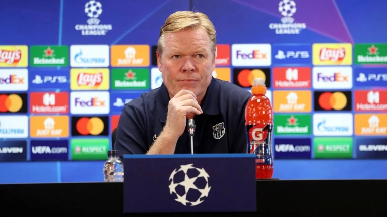 El entrenador del FC Barcelona, Ronald Koeman, en rueda de prensa de la Liga de Campeones 2021/22