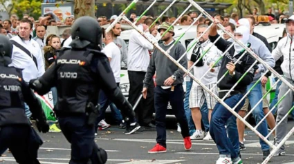 Los aficionados del Legia causaron graves incidentes en su visita a Madrid. EFE.
