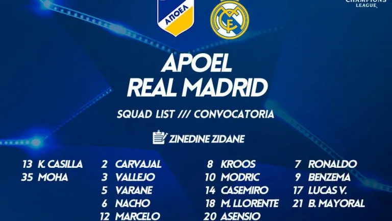 El Real Madrid viaja a Nicosia sin su capitán Sergio Ramos, que sufrió en el derbi madrileño una fractura de los huesos propios de la nariz, ni el croata Mateo Kovacic que debe esperar para volver a los terrenos de juego, y con el marroquí Achraf Hakimi y Marcos Llorente como novedades en la convocatoria.
