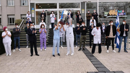 "Por todas las personas que luchan día a día ante la pandemia. Esta Copa es vuestra", es el mensaje de la Real Sociedad dedicado a los sanitarios.