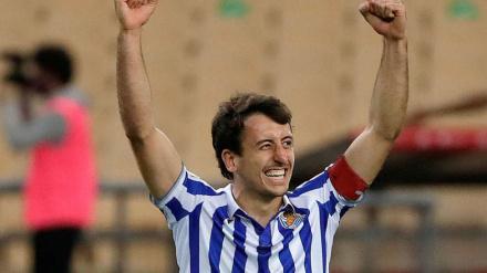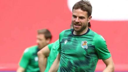 El capitán de la Real sufrió un picnhazo en la pantorrilla derecha en el entrenamiento de este viernes y es duda para la final de Copa del Rey de este sábado.