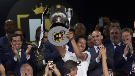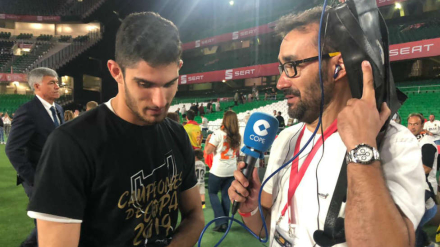 El portugués atendió, muy contento, al micrófono de Juanma Castaño tras ganar la Copa del Rey.