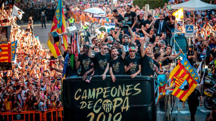 El conjunto valencianista celebró en un estadio de Mestalla lleno el título de Copa del Rey.
