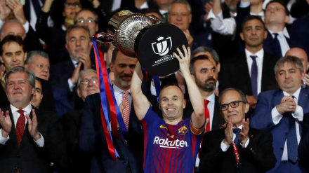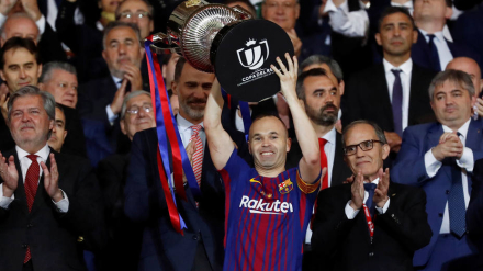 Andrés Iniesta, el gran protagonista de la victoria del Barcelona en la final de la Copa del Rey 2017/18, levantó al cielo de Madrid el trigésimo primer trofeo que logra el conjunto azulgrana con el manchego en el equipo.