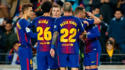 Goles: 1-0, min.16: Alcácer. 2-0, min.57: Piqué. 3-0, min.60: Aleix Vidal. 4-0, min.74: Denis Suárez. 5-0, min.79: Arnaiz.