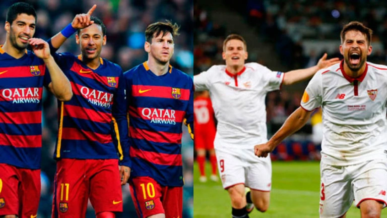 El partido llega para los dos conjuntos en un momento álgido, especialmente de ánimos, y quizá más el Sevilla, que entrará en el Vicente Calderón mañana a las 21.30 horas como vigente campeón de la 'Europa League', torneo que el miércoles alzó por quinta vez en su historia, y el tercero de forma consecutiva.Esto hace que los sevillistas, que aplazaron la celebración hasta el próximo lunes para preparar su nuevo duelo con el todopoderoso Barcelona, afronten con el ánimo por las nubes su octava final de Copa, pero también puede pasarles factura el desgaste físico sufrido en Basilea para remontarle y ganarle al Liverpool (3-1), sobre todo al haber tenido sólo cuatro días de margen entre una y otra cita.Será el cuarto enfrentamiento esta temporada entre ambos equipos, que cierran el curso de la misma forma que lo abrieron, cuando en un choque memorable se jugaron a una carta en Georgia la Supercopa de Europa, trofeo que se fue a las vitrinas del equipo catalán gracias a un tanto de Pedro Rodríguez en la prórroga (5-4) forzada por los hispalenses tras enjugar tres goles de desventaja, del 4-1 al 4-4.Ha llovido mucho desde entonces, hasta el punto de que el Barcelona ha reeditado el título liguero y el Sevilla ha ampliado su mística europea, convirtiéndose en el equipo referencia en el segundo torneo más importante de clubes en el viejo continente.La final de la Copa del Rey los ha reencontrado de nuevo en un partido inédito, ya que nunca antes en este centenario se habían medido, aunque sí, en cambio, en doce ocasiones en eliminatorias anteriores, con un balance favorable a los azulgrana, que pasaron ronda en ocho ocasiones, por cuatro del club del barrio de Nervión.Después del triplete del año pasado, el Barcelona busca en éste un doblete que complemente a la Supercopa de Europa y al Mundial de Clubes que ya ganaron antes de 2016 los pupilos de Luis Enrique, que acude a la final con su equipo en un estado inmejorable, tras haber completado un final de temporada con dos ritmos totalmente opuestos.Mientras en el primero llegó a comprometer su liderato, hasta el punto de que la diferencia de goles le ayudó a agarrarse al primer puesto a falta de cinco jornadas tras perder once puntos en cuatro partidos, fue en los cinco últimos encuentros ligueros donde explotó como parecía que no iba a volver a hacerlo y firmó un quince de quince, con un balance de goles de 24 a favor y ninguno en contra.Con estas cifras acude el Barça al Calderón para presentar batalla a un Sevilla que, con 13 títulos ganados en toda su historia -9 en una última década "prodigiosa", incluido ya su quinto de la Liga Europa del miércoles-, bajó el pistón en el tramo final de la Liga para centrarse en las dos finales que tenía por delante.Y el conjunto de Unai Emery, al que históricamente siempre se le dio mal el Barcelona hasta que en octubre pasado le ganó por primera vez (2-1 en la primera vuelta de la Liga), sacó lo mejor de sí en Basilea, precisamente lejos del Sánchez Pizjuán, después de que en esta liga fuera el único equipo que no ganó ni una vez como foráneo.La propuesta de Luis Enrique para la final no va a variar mucho, especialmente en el once, pues se espera el equipo de gala con la única duda, poco posible, de que el meta chileno Claudio Bravo, ya recuperado, pudiese arrebatarle la titularidad al cada vez más seguro Marc ter Stegen.El Barça sabe que no va a tenerlo fácil ante un Sevilla que ya le ganó en la primera vuelta de la Liga, precisamente en el primer partido en el que Messi estuvo ausente por lesión.El control del centro del campo, una vez más, será donde se resuelva la clave del partido, pues si los azulgrana son capaces de serenar a su rival y empujarlo hacia su campo, parece poco probable que la dinamita que tiene delante, con Messi, Suárez y Neymar, autores este año de 130 goles, no acabe marcando.Además, el Barcelona ha dejado su portería a cero en los últimos cinco partidos a cero, gracias en parte a ajustes con los que Luis Enrique ha corregido aspectos que hacían a la zaga algo vulnerable.Por su parte, el Sevilla, hasta hace una década históricamente huérfano de finales, afronta con todo lo que tiene la del Calderón, con su máxima ilusión, para luchar por conquistar su sexta Copa del Rey -la última la ganó en 2010 al Atlético en el Camp Nou-, y además tendrá el apoyo de unos 20.000 sevillistas que ansían el doblete.A Basilea se desplazaron unos 6.000 y se hicieron notar hasta el punto de ganarle la partida a la hinchada del Liverpool, que les triplicaba en número, y aunque quizás el título europeo ha quitado presión a los de Emery, lo que está claro es que el Sevilla nunca se rinde, que hay que aplastarlo para tumbarle y que, con su casta y su coraje, no desdeña la ocasión histórica de ganar un nuevo título.El técnico vasco, que está haciendo historia en el Sevilla, da la vitola de favorito al súper campeón Barcelona, pero esto puede encerrar un poquito de "trampa" porque también ha advertido que a su equipo y al sevillismo no le "gana nadie en ilusión".Tiene bajas notables para la final. Están lesionados el galo Tremoulinas y el danés Krohn-Dehli, y sancionados por sendas 'meteduras de pata" el defensa francés Kolodziejczak y el medio N'Zonzi por protestas al árbitro en liga y en la semifinal de Copa en Vigo, respectivamente.Lo más seguro es que repita el once que ganó la Liga Europa al Liverpool con dos cambios: la vuelta a la portería del internacional Sergio Rico por David Soria, que ha sido el titular en Europa; y la entrada por N'Zonzi de Vicente Iborra, que podría jugar en la media punta y Éver Banega retrasar su posición al medio campo, o bien del uruguayo Cristóforo, y en ese caso el argentino jugaría de enganche.
