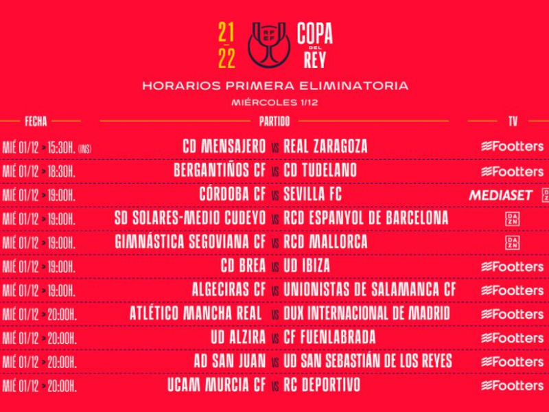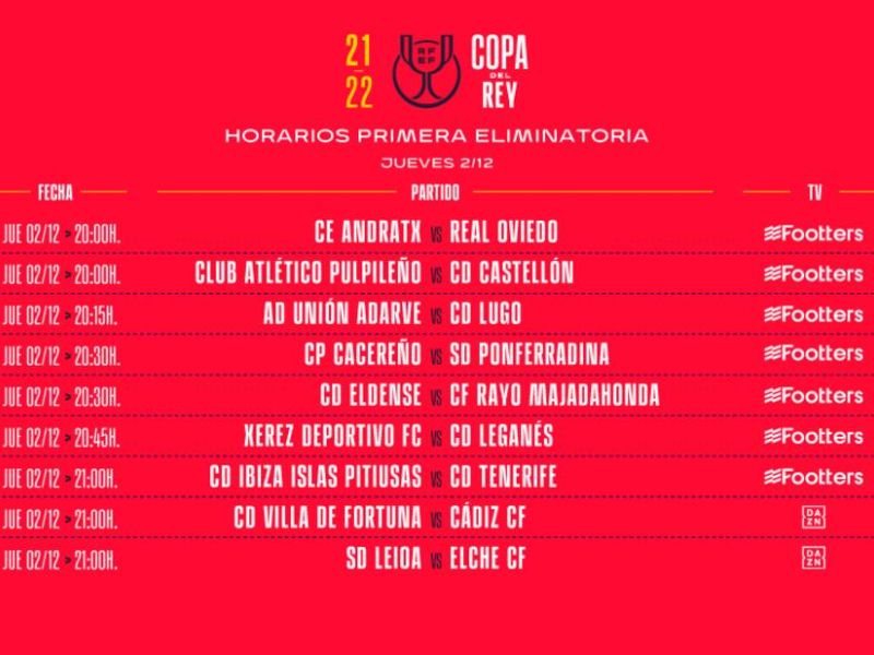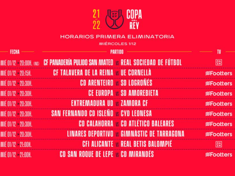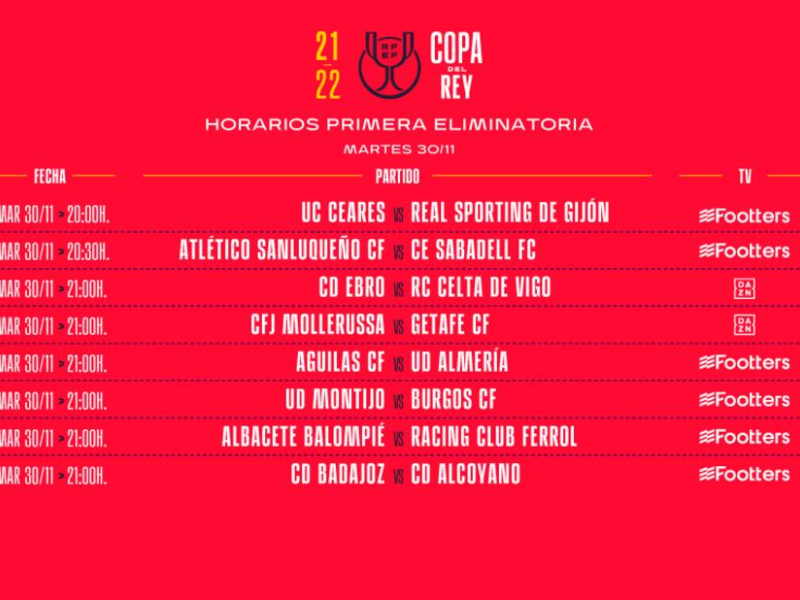 Consulta los horarios de la primera eliminatoria de la Copa del Rey