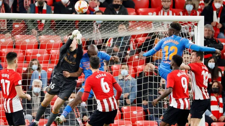 Y ese momentos llegó en el minuto 19 con una cesión de Diakhaby a Mamardashvili en la que falló el meta georgiano y casi le cuesta un gol. A raíz de esa jugada mejoró el Athletic, que ya en el último cuarto de hora de la primera mitad se lanzó con toda hacia la meta rival, mucha veces en las jugadas balón parado que generaba.