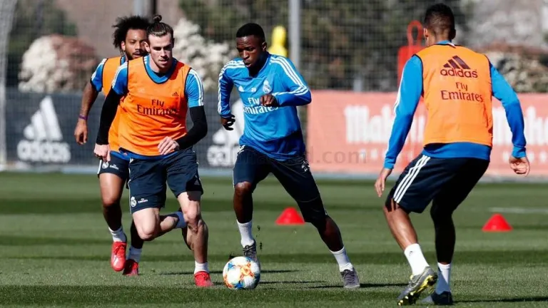Las risas de Bale en los rondos, Isco totalmente recuperado y el acierto de Vinicius en el partido de entrenamiento, marcaron la última sesión del Madrid.