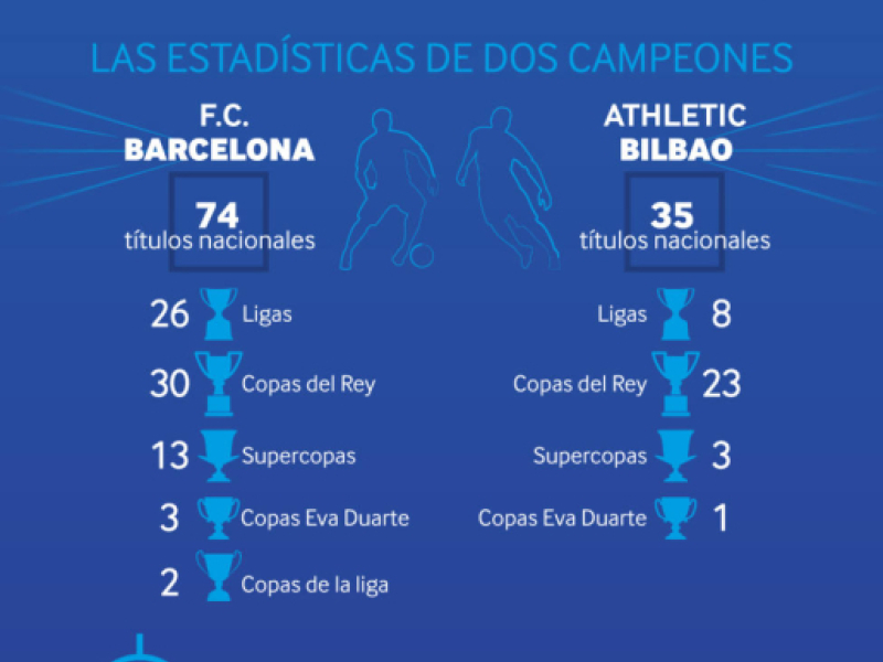 Si volcamos la mirada al nivel de ambos clubes en el mítico torneo, el palmarés no puede ser mejor: Barcelona y Athletic ostentan los récords de trofeos de la Copa del Rey, con el primero como máximo ganador histórico con 30 copas a su espalda y el segundo siguiéndole de cerca con 23 trofeos. Sin duda alguna, torneo y clásico están unidos por un halo histórico de leyenda y tradición futbolística al servicio de dos equipos históricos.