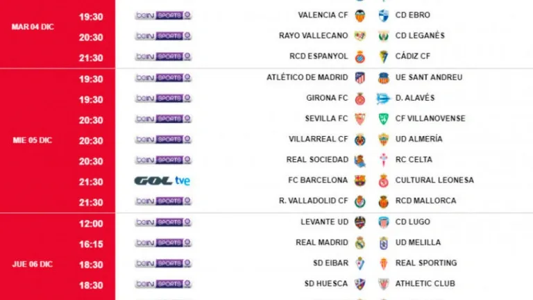 Horarios de la vuelta de los dieciseisavos de final de la Copa del Rey