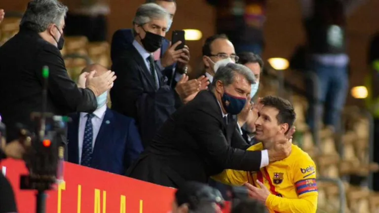 El presidente del Barcelona, Joan Laporta, dijo que está "convencido" de que la intención de Leo Messi es "quedarse" la próxima temporada en el conjunto azulgrana, que este sábado se proclamó campeón de la Copa del Rey ante el Athletic Club (0-4).