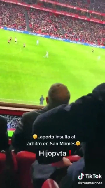 En las imágenes publicadas en la red social Tik-Tok por el usuario @izanmarcoss, se aprecia a Laporta increpando a alguien sin determinar durante el partido ante el Athletic.
