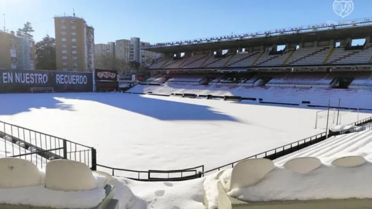 Según ha informado Carlos Ganga, el césped del Estadio de Vallecas tenía mucho hielo y las quitanieves no podían trabajar. Los esfuerzos se centran en la Ciudad Deportiva.