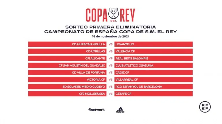 112 equipos conocerán este jueves a su rival en la primera ronda de la Copa del Rey 2021/2022. Todos los participantes salvo el Atlético de Madrid, el Real Madrid, el Barcelona y el Athletic de Bilbao, que entrarán en octavos de final por disputar la Supercopa de España, entran en el bombo de un sorteo que está a punto de comenzar en la Ciudad del Fútbol de Las Rozas.