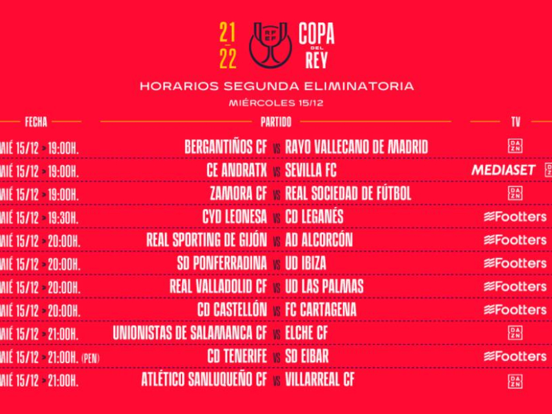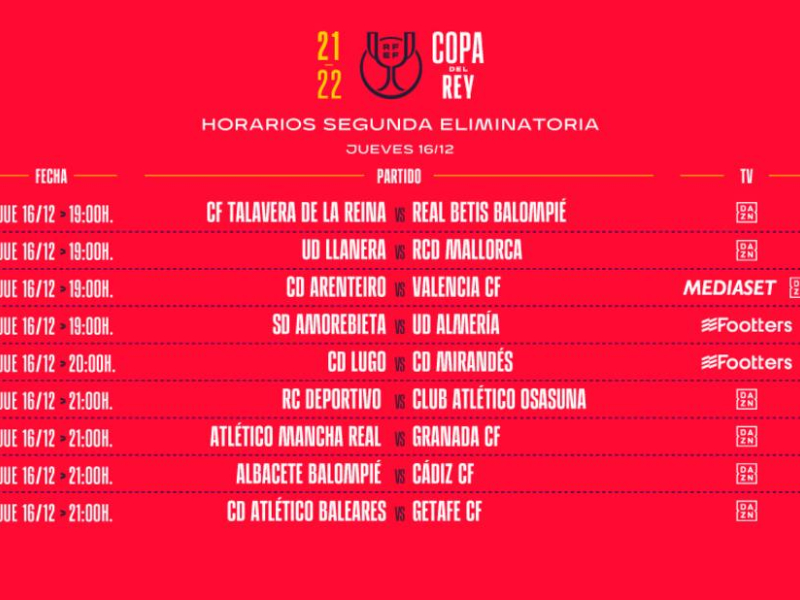 Consulta todos los emparejamientos de la segunda ronda de la Copa del Rey