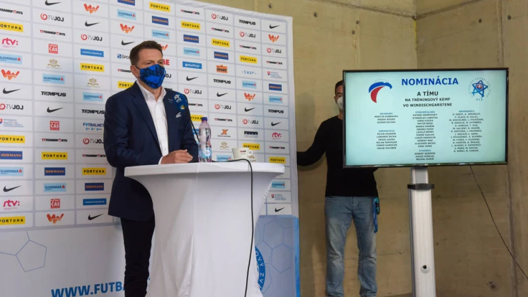 El seleccionador Štefan Tarkovi? dando la lista de convocados