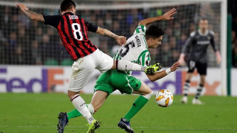 Pese a que en Milán se reconocía la importancia del choque por su trascendencia clasificatoria, la verdad es que la formación verdiblanca salió mucho mas enchufada y pronto, en el minuto doce, una gran jugada trenzada de ataque fue culminada por el argentino Giovani Lo Celso en el 1-0 ante un Pepe Reina vendido bajo su portería. Se le vio poco a la escuadra 'rossoneri' ante el empuje de los locales, que no especularon con el marcador y controlaron bien en el centro del campo para salir hacia el área rival, sin que en la defensa hubiera problemas para controlar a Patrick Cutrone.