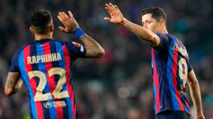 46'. Saltan los dos equipos al terreno de juego. Xavi y Ten Hag siguen con los mismos protagonistas sobre el césped. El centro de Raphinha no llega Lewandowski, pero hay falta del delantero.