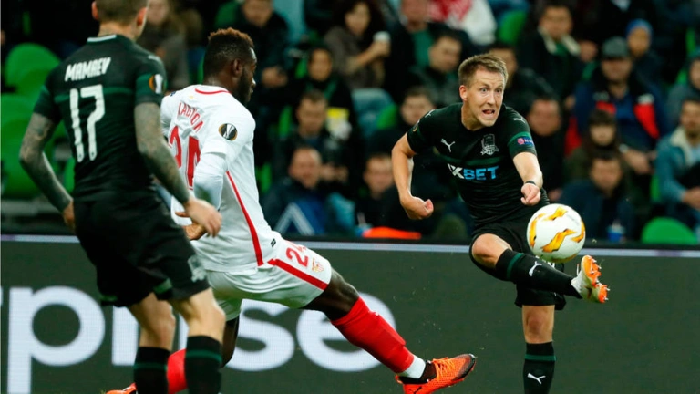 Los sevillistas tomaron ventaja con un gol en propia meta de Kaboré, tras un remate de Nolito, en un mal primer tiempo, y tras el descanso, cuando parecía que reaccionaban, el Krasnodar, nuevo líder del grupo, se desquitó de sus remates al palo y le dio la vuelta al marcador con goles del uruguayo Pereyra y Okriashvili, éste a tres del final.