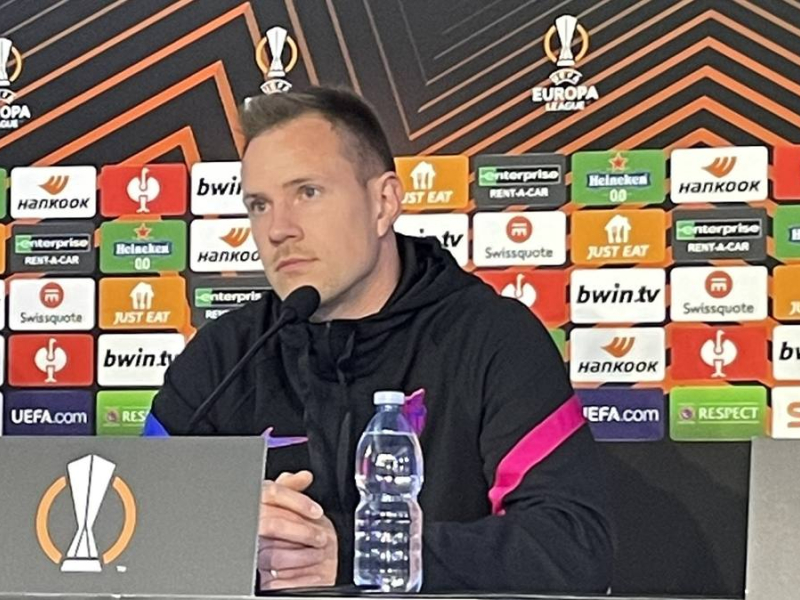 El meta alemán atendió a los medios antes de afrontar el duelo de vuelta de dieciseisavos de final de la Liga Europa, después del 1-1 en el Camp Nou. Ter Stegen mejora en sus actuaciones al igual que el Barça de Xavi, en busca de regularidad y en lo personal con las complicaciones que ha supuesto una larga lesión.