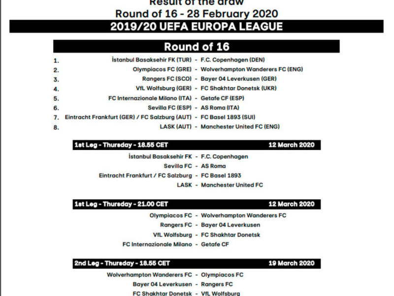 Los emparejamientos de los octavos de final de la Liga Europa, son los siguientes: