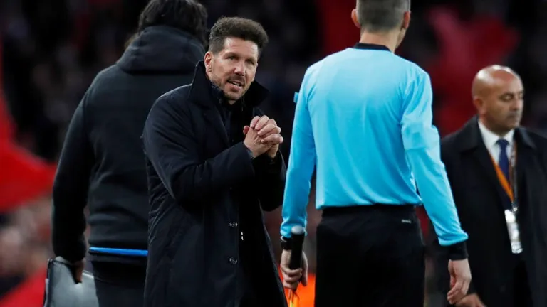 Simeone no podrá sentarse en el banquillo del Atlético de Madrid el próximo miércoles 16 de mayo en la final de la Europa League. El técnico argentino ha sido sancionado por la UEFA con cuatro partidos y una multa de 10.000 euros tras su expulsión en la ida de semifinales en el estadio del Arsenal. El Atlético de Madrid recurrirá el castigo.