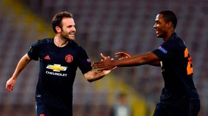 Mata celebra el 0-3 del Manchester United al Lask. CORDONPRESS