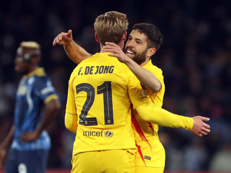 Jordi Alba celebra el gol al Nápoles (EFE)