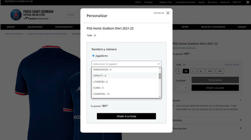 El PSG no vende en su tienda online la camiseta de Mbappé quitando la opción de poder personalizar la equipación con el nombre y el dorsal del delantero. Solo vende la tercera.