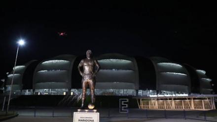 Al llegar al estadio Madre de Ciudades de Santiago del Estero, toda la plantilla albiceleste desveló una estatua de cinco metros de altura y dos toneladas de peso de Diego Maradona