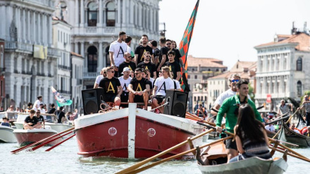 El equipo veneciano ha regresado a la SerieA 20 años después y su celebración no ha podido ser más pintoresca, llenando sus canales con góndolas, incluidos los jugadores del equipo