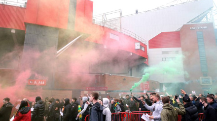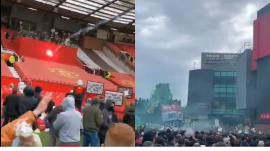Unos 200 aficionados invadieron este domingo el estadio de Old Trafford como protesta contra la familia Glazer y también impidieron la salida de los jugadores el United del hotel.