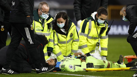 El guardameta del Wolverhampton, Rui Patricio quedó conmocionado sobre el terreno de juego. Fue atendido durante casi quince minutos antes de abandonar el campo en camilla.