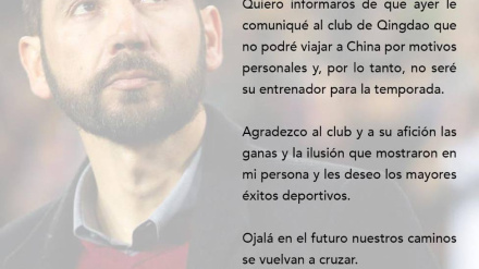 Machín iba a sustituir en el Qingdao Huanghai a su compatriota Juanma Lillo, quien recientemente dejó el club para unirse al cuerpo técnico del Manchester City.