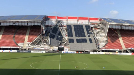 Según puede verse en las imágenes que publica la prensa holandesa una gran pila de chapa y escombros aparece derrumbado sobre las gradas de un lateral.