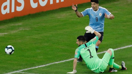 Corría el minuto 22 y Suárez se adentró en el área y el portero chileno Arias le detuvo un lanzamiento mientras que el uruguayo pedía penalti.