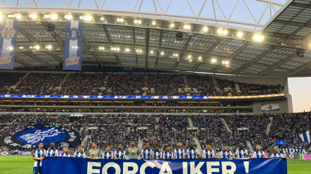 La afición del Oporto homenajeó a Iker Casillas tras el infarto sufrido el pasado miércoles.