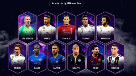 Ter Stegen; Ramos, Van Dijk, Marcelo, Varane; Kante, Modric, Hazard; Messi, Mbappé y Cristiano son los elegidos en el equipo ideal de la UEFA 2018.
