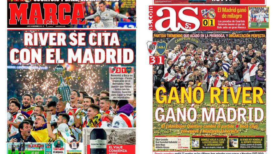 Los diarios deportivos destacan el gran ambiente vivido en el Bernabéu en la final de la Libertadores, con ausencia de incidentes.