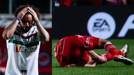 Durísima lesión en el Fluminense-Argentinos Juniors. Marcelo pisó accidentalmente la pierna de Luciano Sánchez y le provocó una luxación de rodilla. El brasileño fue expulsado.