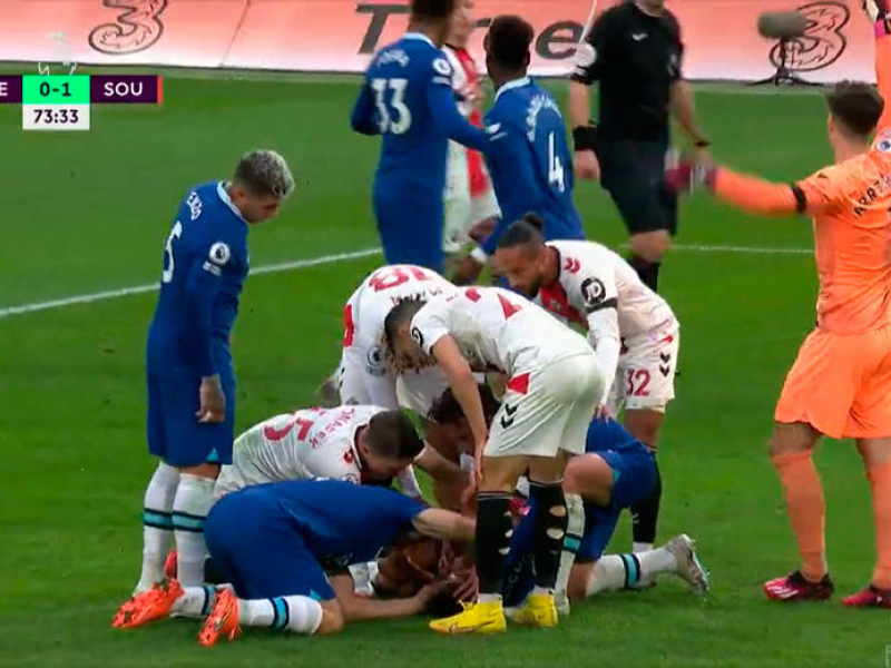 El jugador español del Chelsea fue retirado en camilla tras recibir una patada en la cara y fue asistido con oxígeno. Azpilicueta pasará la noche en observación en el hospital.
