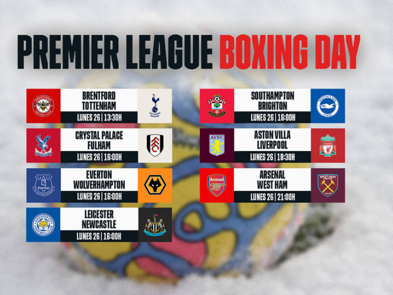 Como es tradición en Inglaterra habrá 'Boxing Day'. La Premier League suele programar varias jornadas aprovechando las vacaciones navideñas y este año no ha querido ser menos. Hasta tres fechas se disputarán desde el día 26 de diciembre hasta el jueves 5 de enero. La atención se la llevará el lunes cuando los campos se llenen de familias para disfrutar del gran día de fiesta en el fútbol británico.