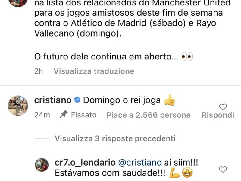 El propio Cristiano Ronaldo ha confirmado en redes sociales que puede regresar el próximo domingo ante el Rayo Vallecano en la presentación del equipo en Old Trafford.