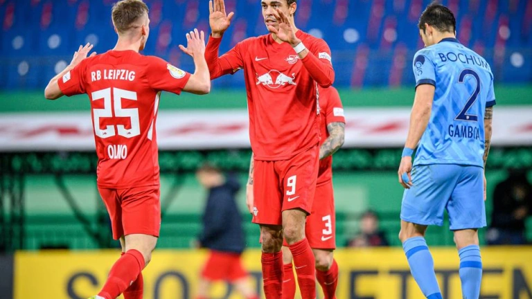 El Leipzig, con la aportación de Angeliño y Dani Olmo goleó al Bochum, de segunda (4-0), y el Wolfsburgo, que venció al Schalke (1-0), alcanzaron los cuartos de final de la Copa de Alemania.