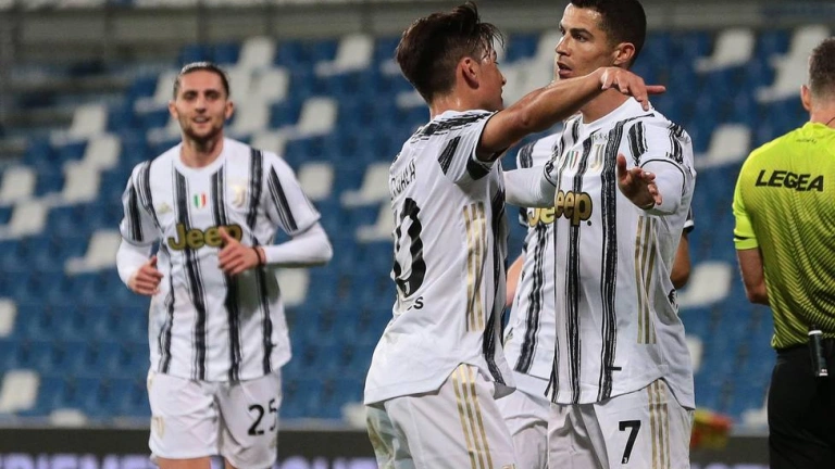 El portugués Cristiano Ronaldo y el argentino Paulo Dybala alcanzaron este miércoles los cien goles con la camiseta de la Juventus y propiciaron el triunfo 3-1 en el campo del Sassuolo, pero el equipo turinés sigue fuera de los puestos de Liga de Campeones de la Serie A, a falta de dos jornadas para el final.